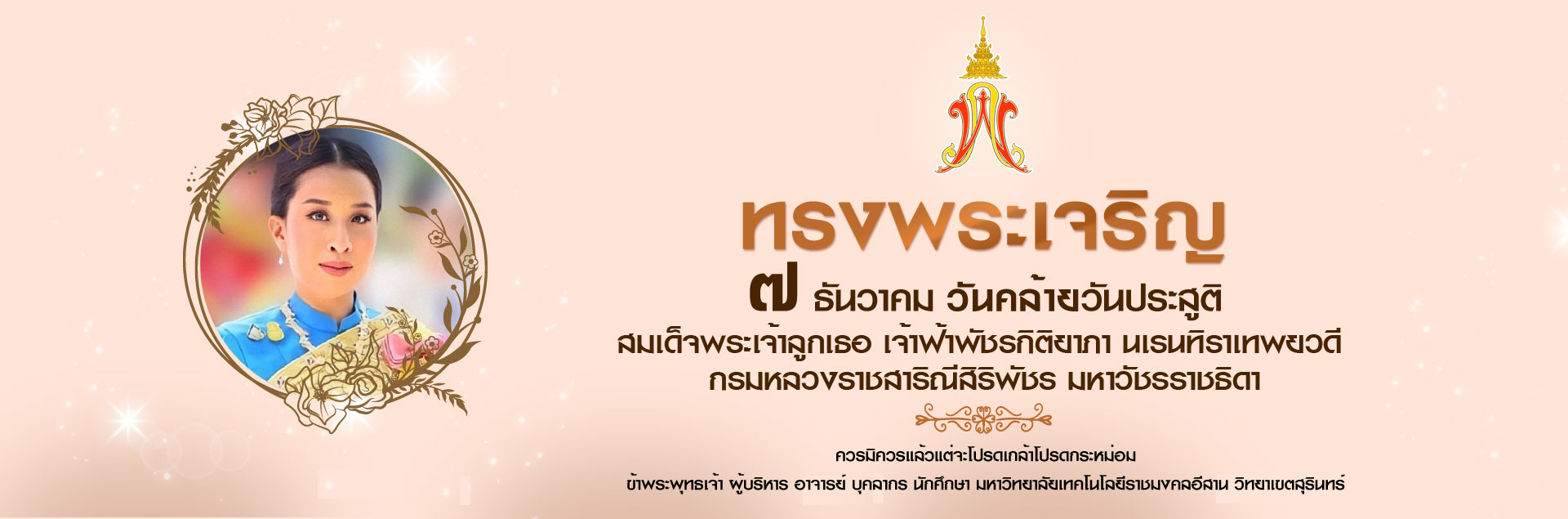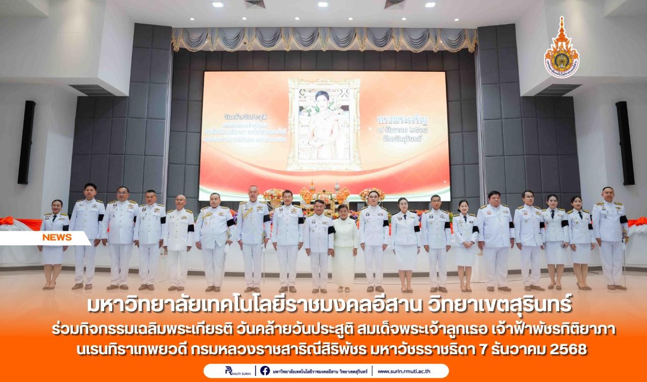 มหาวิทยาลัยเทคโนโลยีราชมงคลอีสาน วิทยาเขตสุรินทร์ ร่วมกิจกรรมเฉลิมพระเกียรติ วันคล้ายวันประสูติ สมเด็จพระเจ้าลูกเธอ เจ้าฟ้าพัชรกิติยาภา นเรนทิราเทพยวดี กรมหลวงราชสาริณีสิริพัชร มหาวัชรราชธิดา 7 ธันวาคม 2568...
