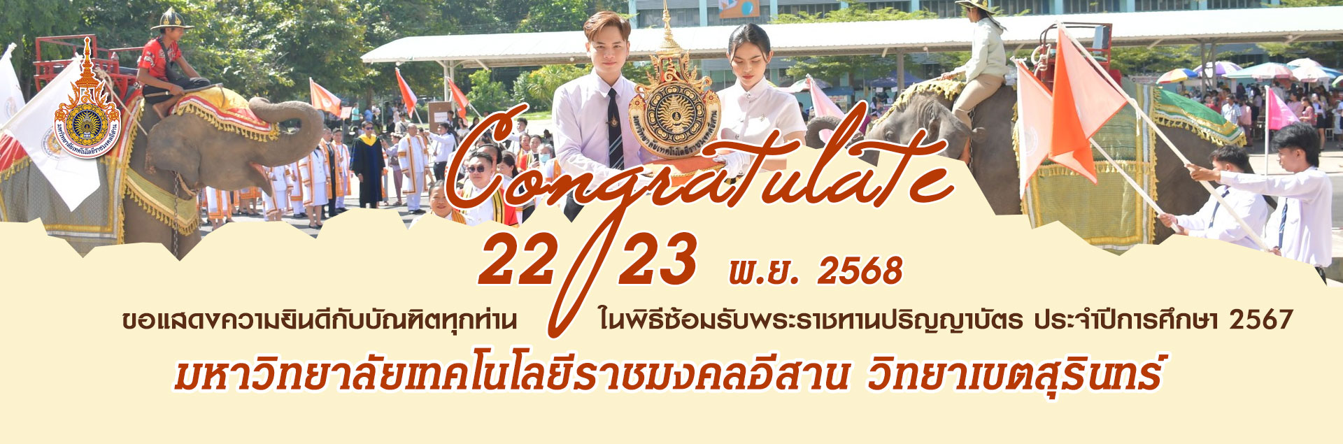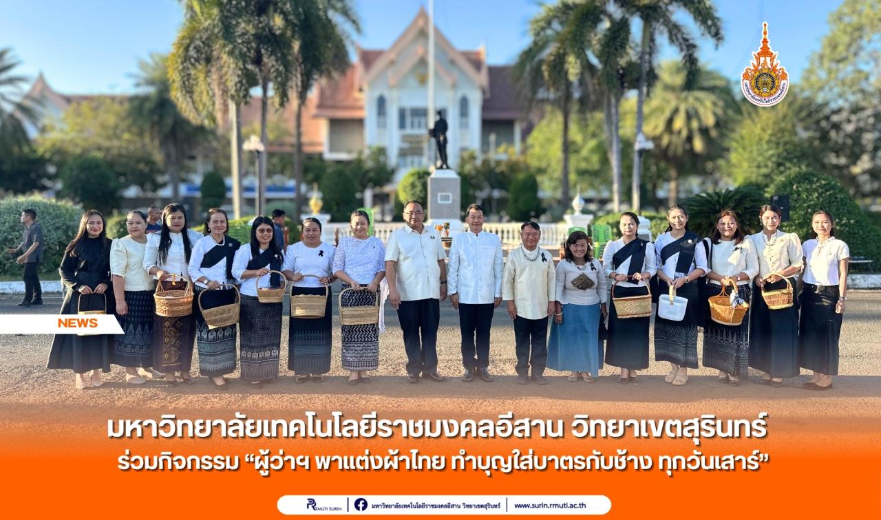 มทร.อีสาน วิทยาเขตสุรินทร์ ร่วมกิจกรรม “ผู้ว่าฯ พาแต่งผ้าไทย ทำบุญใส่บาตรกับช้าง ทุกวันเสาร์”...
