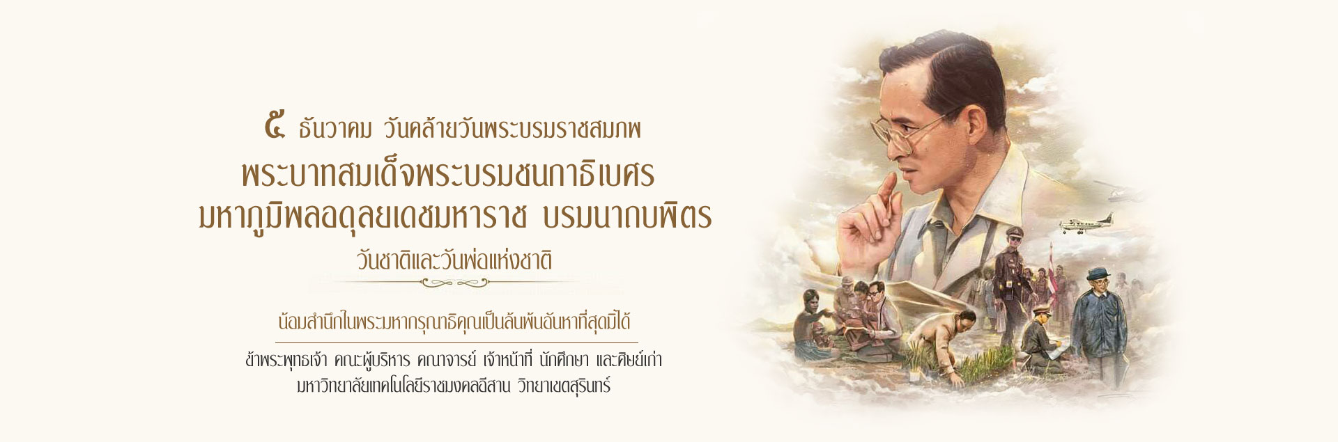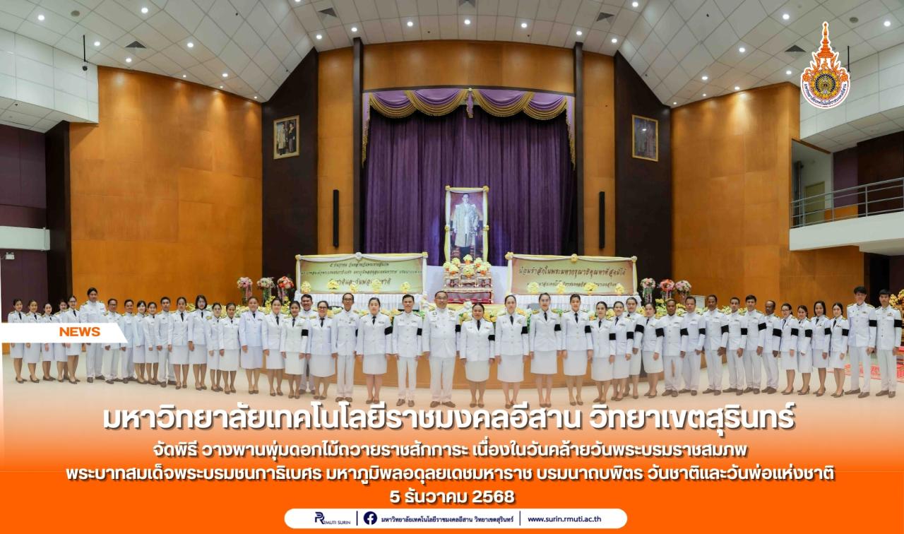 มหาวิทยาลัยเทคโนโลยีราชมงคลอีสาน วิทยาเขตสุรินทร์ จัดพิธีวางพานพุ่มดอกไม้ถวายราชสักการะ เนื่องในวันคล้ายวันพระบรมราชสมภพ ของพระบาทสมเด็จพระบรมชนกาธิเบศร มหาภูมิพลอดุลยเดชมหาราช บรมนาถบพิตร วันชาติและวันพ่อแห่งชาติ 5 ธันวาคม 2568...