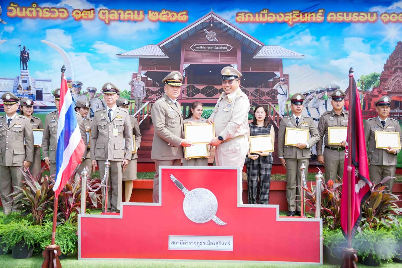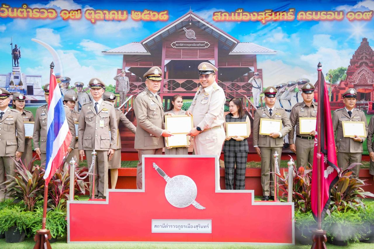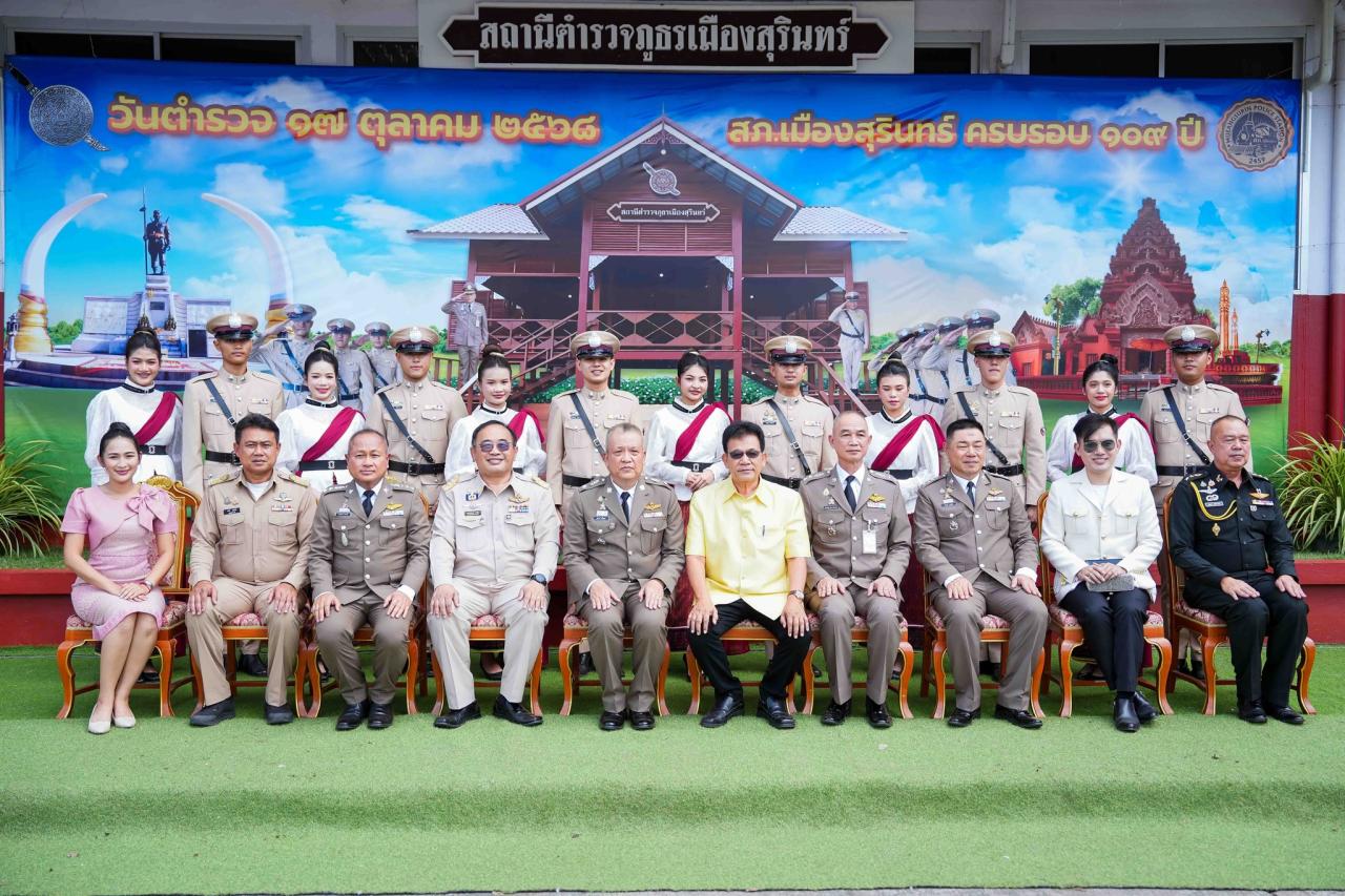 ในการนี้ นายประภาส ศรีจันทร์เวียง รองผู้ว่าราชการจังหวัดสุรินทร์ รักษาราชการแทนผู้ว่าราชการจังหวัดสุรินทร์ ให้เกียรติเป็นประธานในพิธี ร่วมด้วย พล.ต.ต.สุคนธ์ ศรีอรุณ ผู้บังคับการตำรวจภูธรจังหวัดสุรินทร์ หัวหน้าส่วนราชการ ข้าราชการศาล ทหาร ตำรวจ แม่บ้านตำรวจ อดีตผู้บังคับบัญชา และแขกผู้มีเกียรติ เข้าร่วมอย่างพร้อมเพรียง