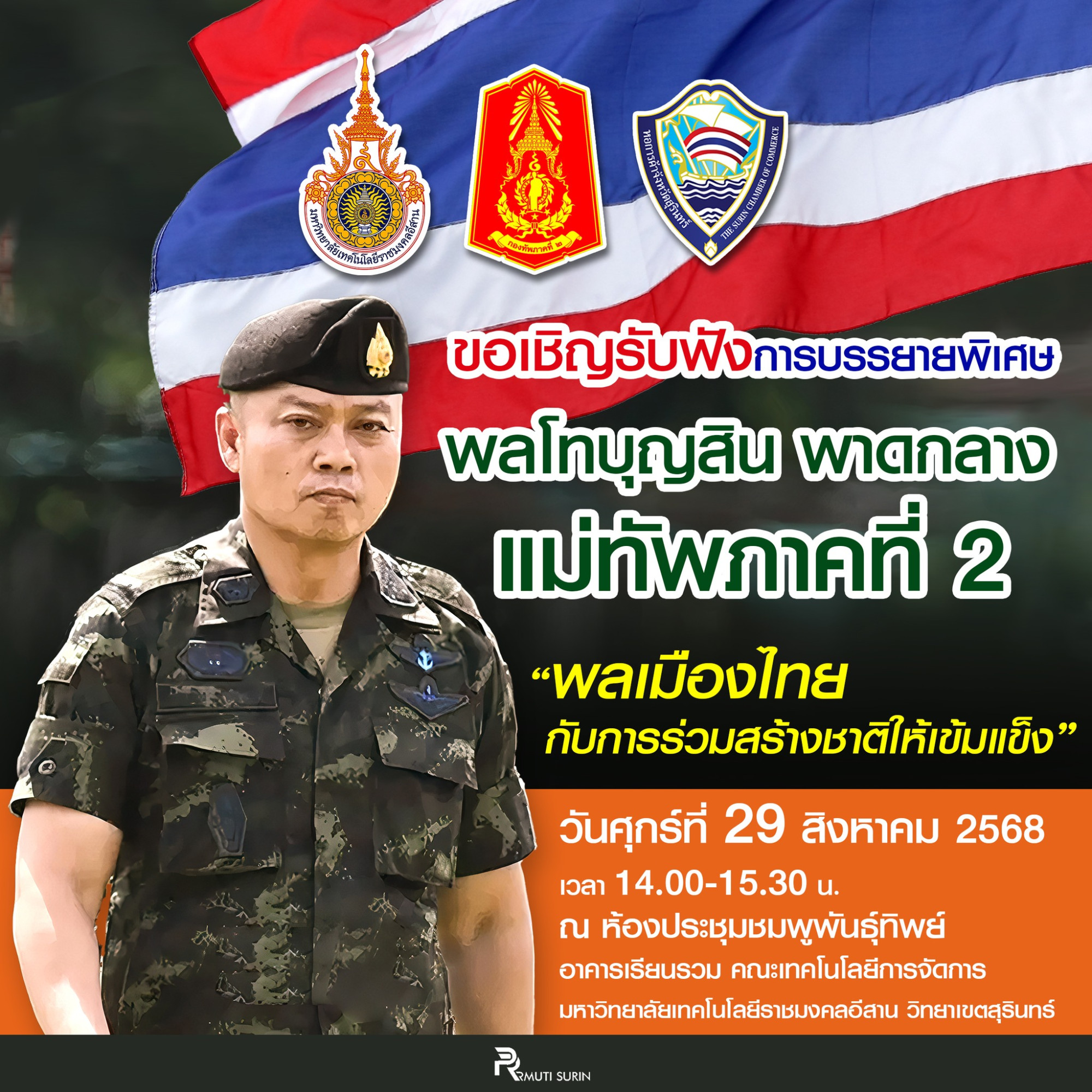 ขอเชิญรับฟังการบรรยายพิเศษ "พลเมืองไทย กับการร่วมสร้างชาติให้เข้มแข็ง" วันศุกร์ที่ 29 สิงหาคม 2568