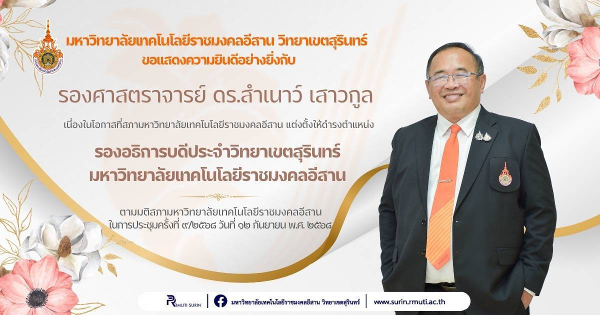 ขอแสดงความยินดีอย่างยิ่งกับการแต่งตั้งให้ดำรงตำแหน่ง ️รองอธิการบดีประจำวิทยาเขตสุรินทร์