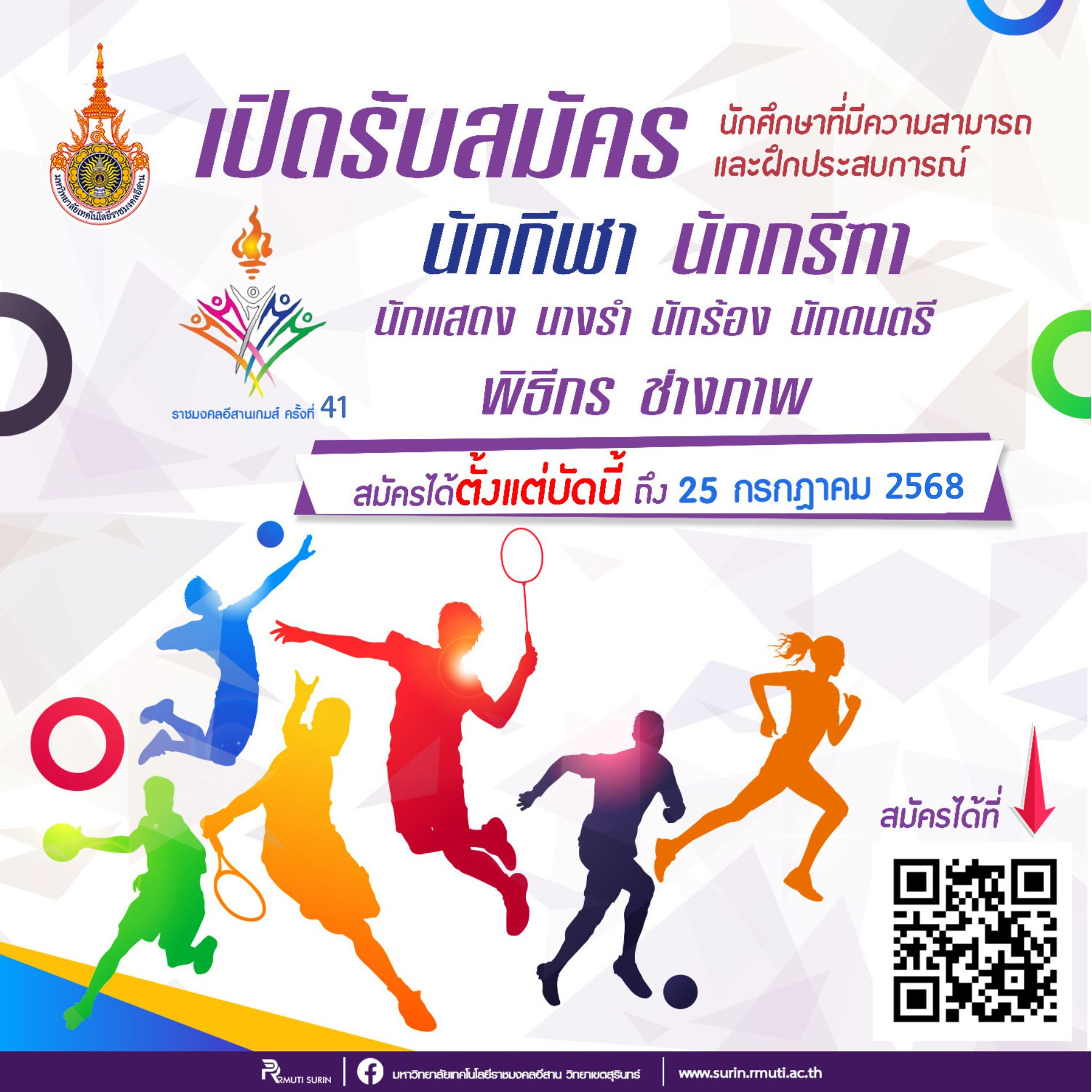 ราชมงคลสุรินทร์ รับสมัครนักกีฬา นักร้อง นักแสดง ทีมงาน อื่นๆ “ราชมงคลอีสานเกมส์และสืบสานวัฒนธรรมฯ”