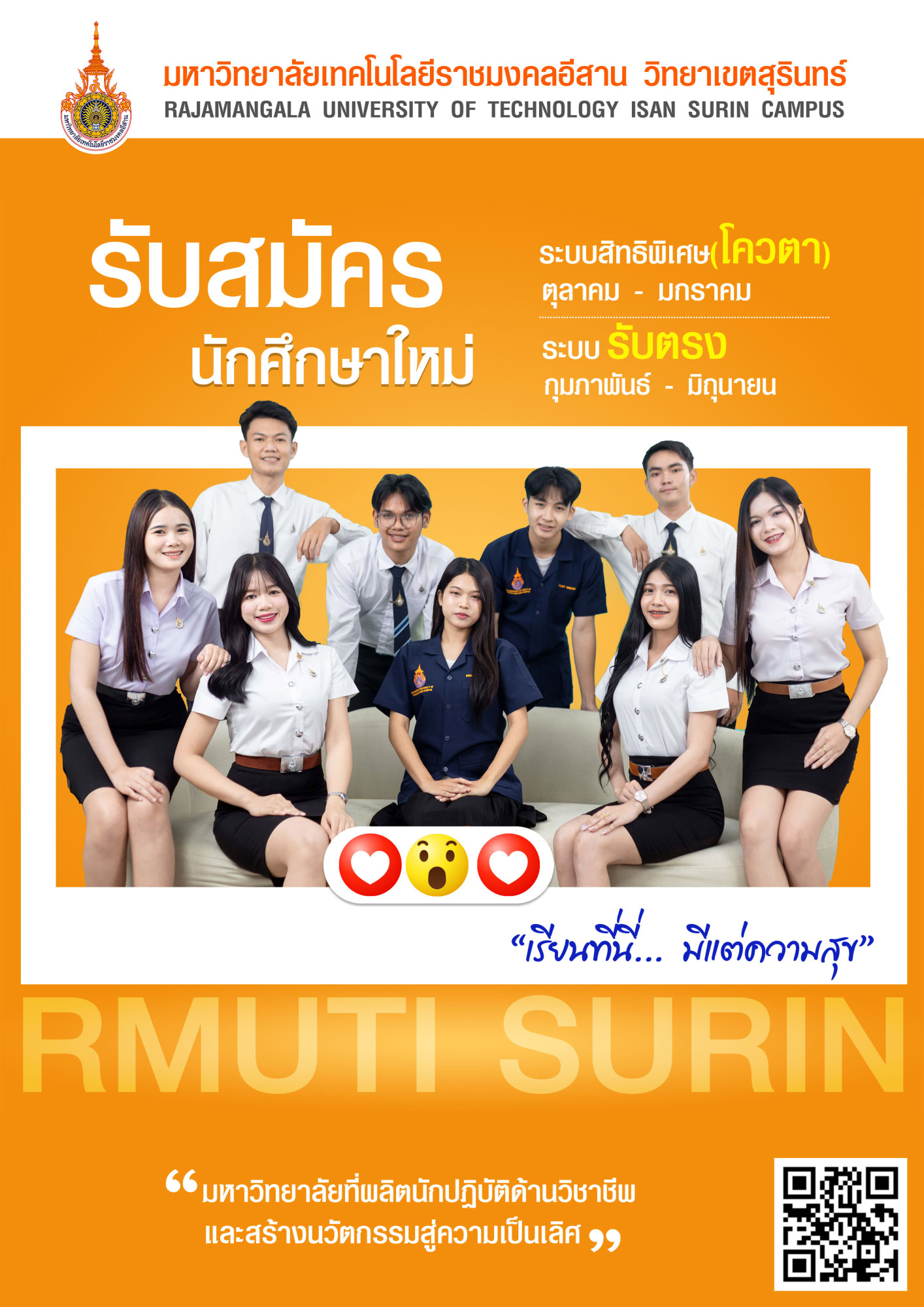ราชมงคลสุรินทร์ เปิดรับสมัครนักศึกษาประจำปีการศึกษา 2569