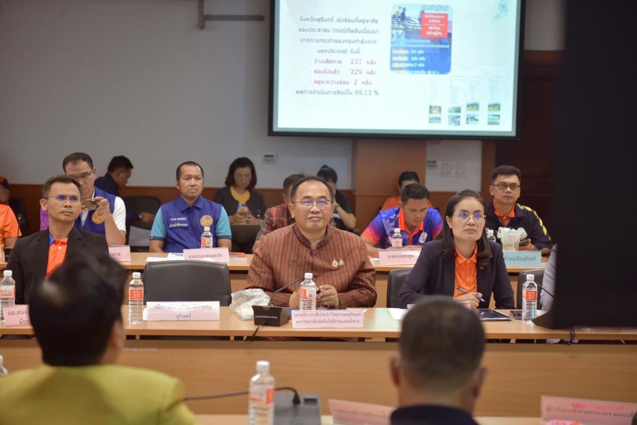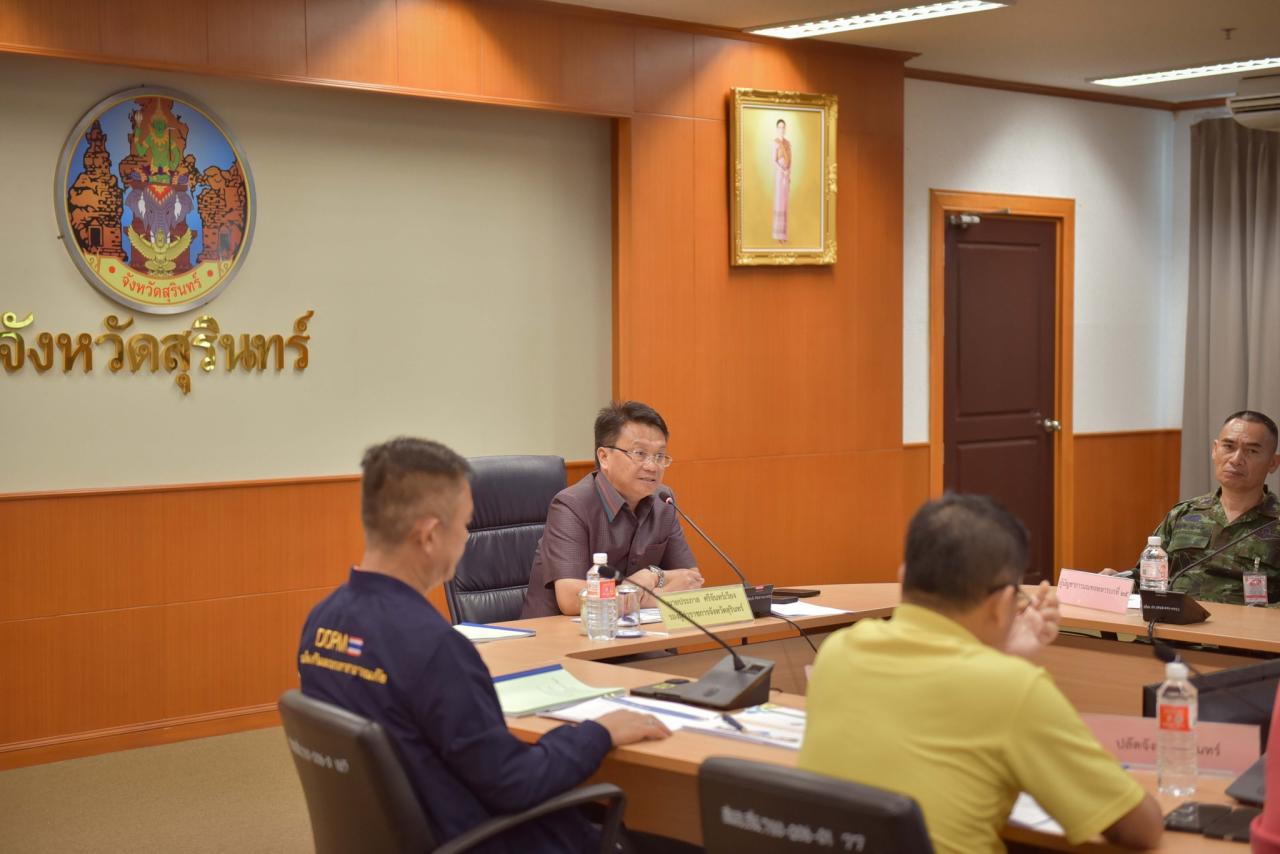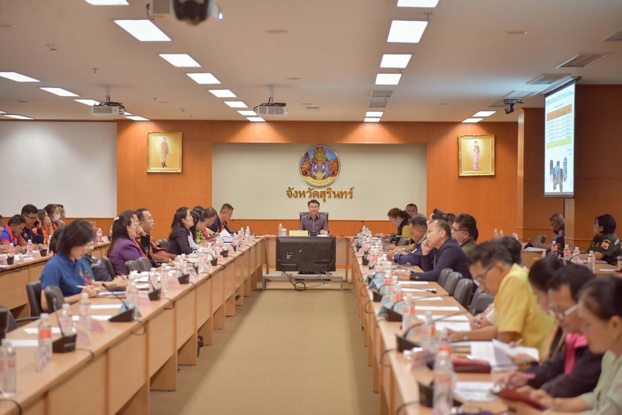 การประชุมดังกล่าวจัดขึ้นเพื่อรับทราบผลการดำเนินงานที่ผ่านมา รายงานปัญหาและอุปสรรค รวมถึงเตรียมความพร้อมในการรองรับสถานการณ์ที่อาจเกิดขึ้น โดยมี นายประภาส ศรีจันทร์เวียง รองผู้ว่าราชการจังหวัดสุรินทร์ รักษาราชการแทนผู้ว่าราชการจังหวัดสุรินทร์ เป็นประธานการประชุม