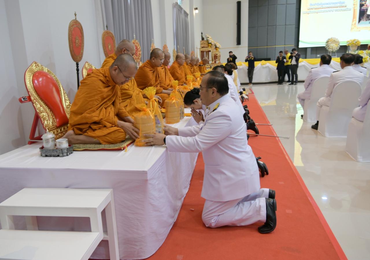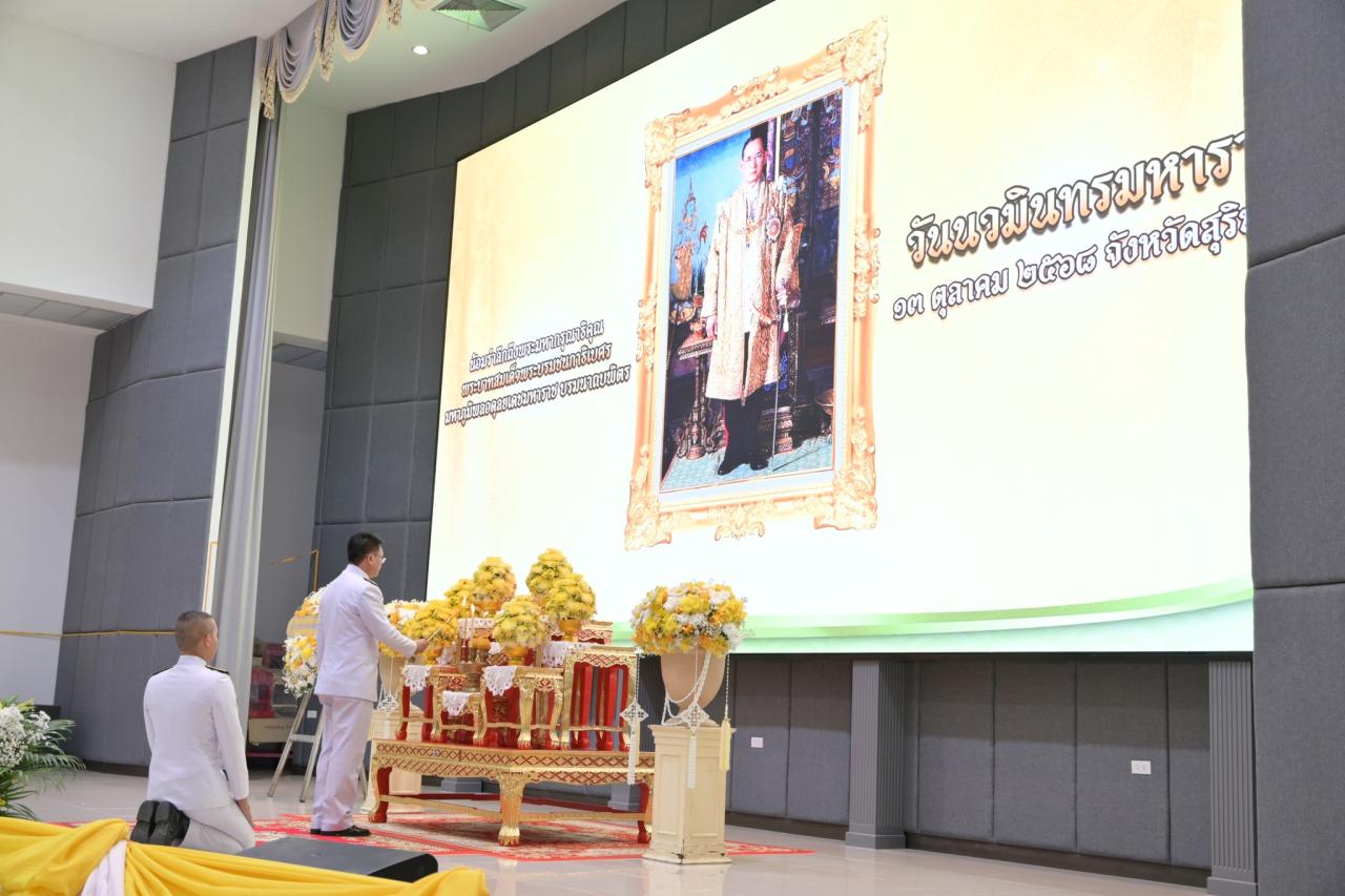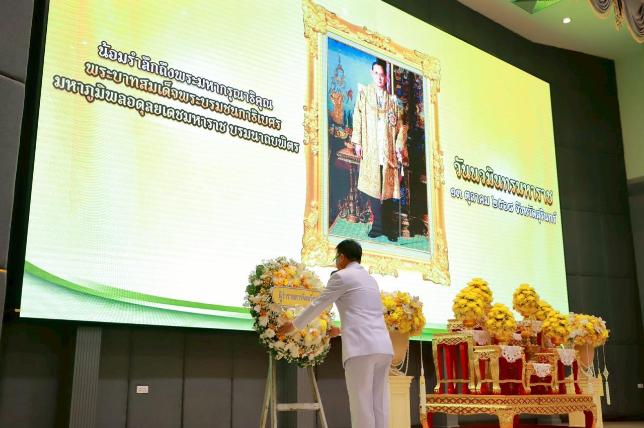 วันที่ 13 ตุลาคม 2568 เวลา 08.19 น. รองศาสตราจารย์ ดร.สำเนาว์ เสาวกูล รองอธิการบดีประจำวิทยาเขตสุรินทร์ พร้อมด้วย อาจารย์ ดร.ชุติกร ปรุงเกียรติ ผู้ช่วยอธิการบดี อาจารย์ ทรงยศ กิตติชนม์ธวัช คณบดีคณะเกษตรศาสตร์และเทคโนโลยี นางสาวสุเนตรา ทองจันทร์ ผู้อำนวยการสำนักงานวิทยาเขตสุรินทร์ นางภัทร์พิชชา พวงสด หัวหน้าสำนักงานคณบดีคณะเกษตรศาสตร์และเทคโนโลยี บุคลากร มทร.อีสาน วิทยาเขตสุรินทร์ ร่วมพิธีถวายราชสักการะ และพิธีสวดพระพุทธมนต์ เนื่องในวันนวมินทรมหาราช ณ หอประชุมจังหวัดสุรินทร์ โดยมีนายประภาส ศรีจันทร์เวียง รองผู้ว่าราชการจังหวัดสุรินทร์ รักษาราชการแทนผู้ว่าราชการจังหวัดสุรินทร์ เป็นประธานในพิธี มีหัวหน้าส่วนราชการ ศาล ทหาร ตำรวจ หน่วยงานภาครัฐ รัฐวิสาหกิจ ภาคเอกชน และประชาชนจิตอาสาอำเภอเมืองสุรินทร์ ร่วมพิธี
