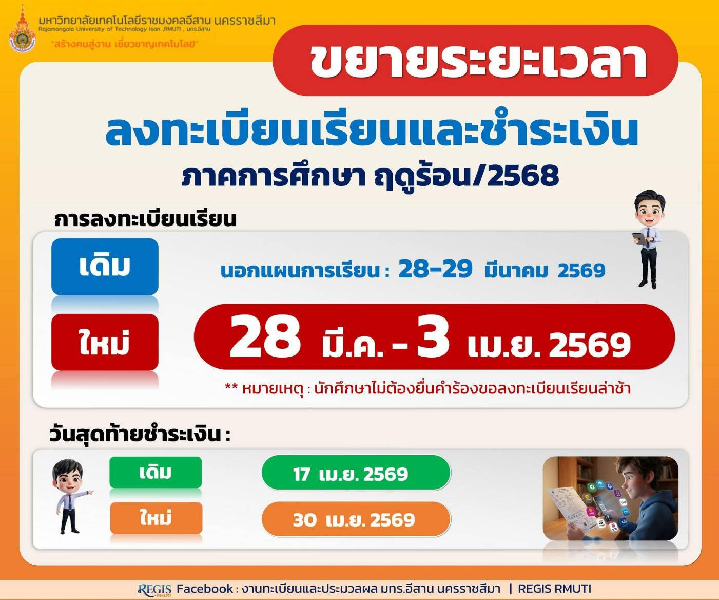 ขยายกำหนดการลงทะเบียนเรียน และชำระค่าธรรมเนียมการศึกษา ภาคการศึกษาฤดููร้อน ปีการศึกษา 2568 ครั้งที่ 2